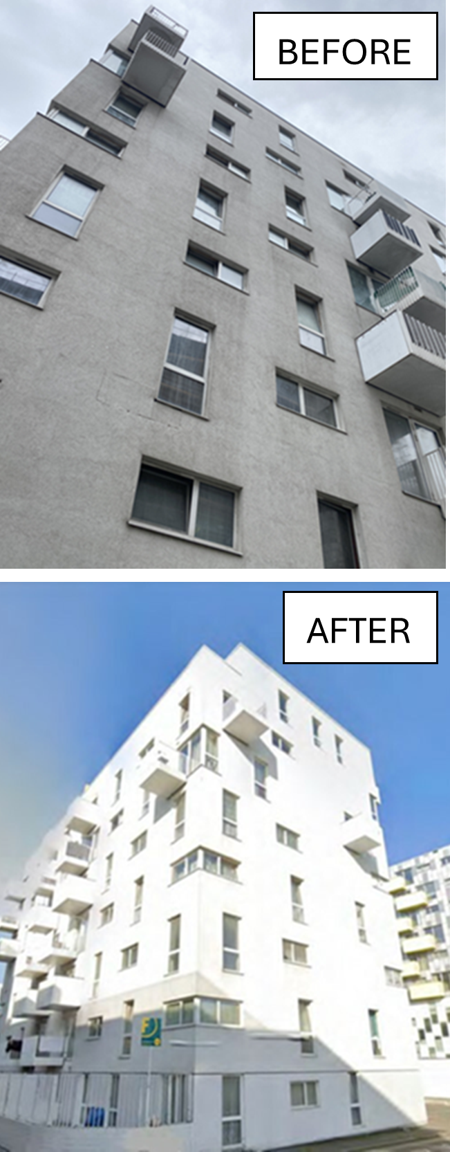 After our initial investigations and recommendations our works included the removal of the existing combustible render system and the design and installation of a new direct fix mineral render system supplied by Alsecco.